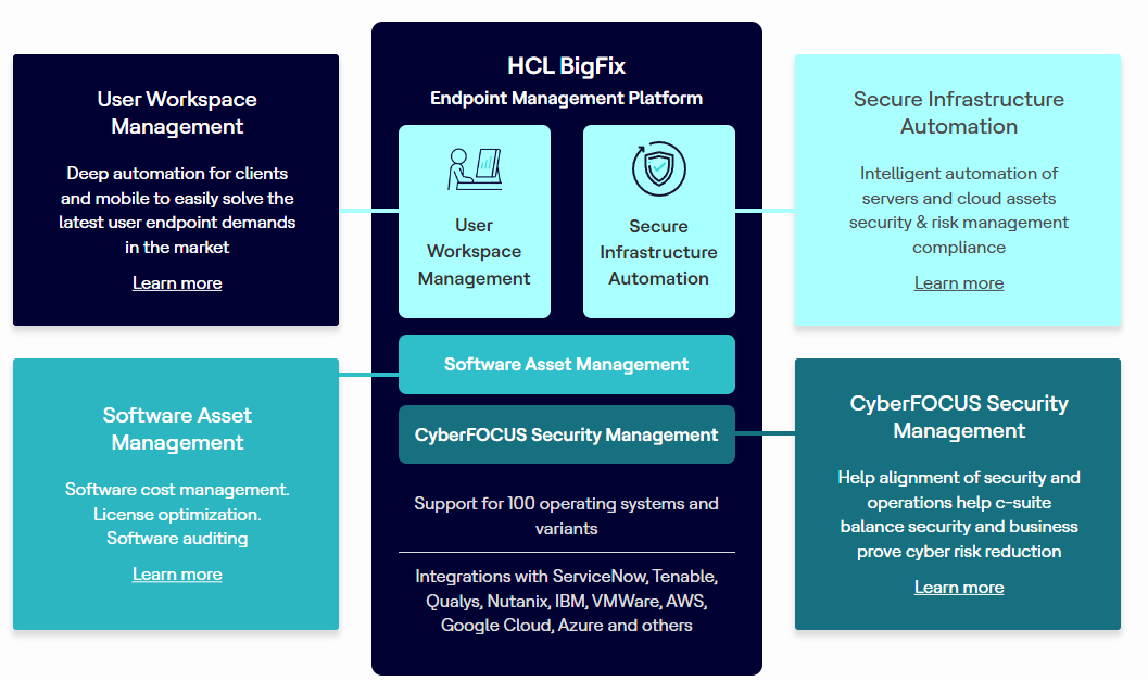 HCL BigFix empowers IT operations teams with continuous compliance and intelligent automation capabilities. It streamlines management processes, reduces operating costs, and enhances endpoint security across nearly 100 operating system versions.